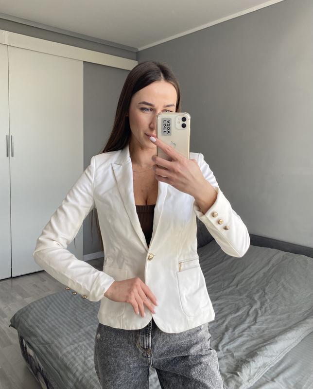 Пиджак Reserved, размер 36, укороченный, приталенный, белого цвета, застегивается на одну пуговицу, в очень хорошем состоянии