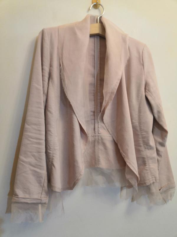 Размер М, длина 54 (59 с шелковым воланом), пог48, пот 42,плечи40, плечо10, рукав61-65, бицепс 17.5, лен, полиэстер, вискоза, эластан, шелк