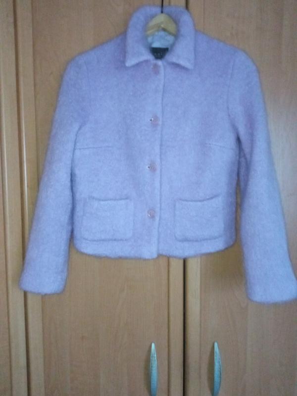 укороченный женский шерстяной жакет сиреневого цвета. Теплый и легкий