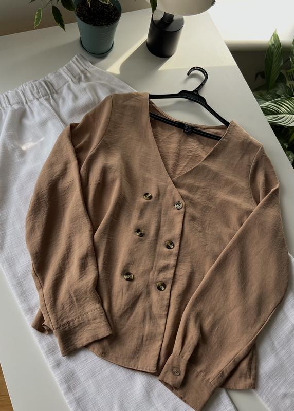 Стильний жіночий жакет з V-подібним вирізом у карамельному відтінку. Вільний крій, що підходить для різних типів фігури, виглядає стильно як у розстібнутому, так і в застібнутому вигляді. Розмір M/L Підобхват грудей -51см Довжина - 59см Довжина рукава від плеча -61см Доставка новою поштою та Укрпоштою