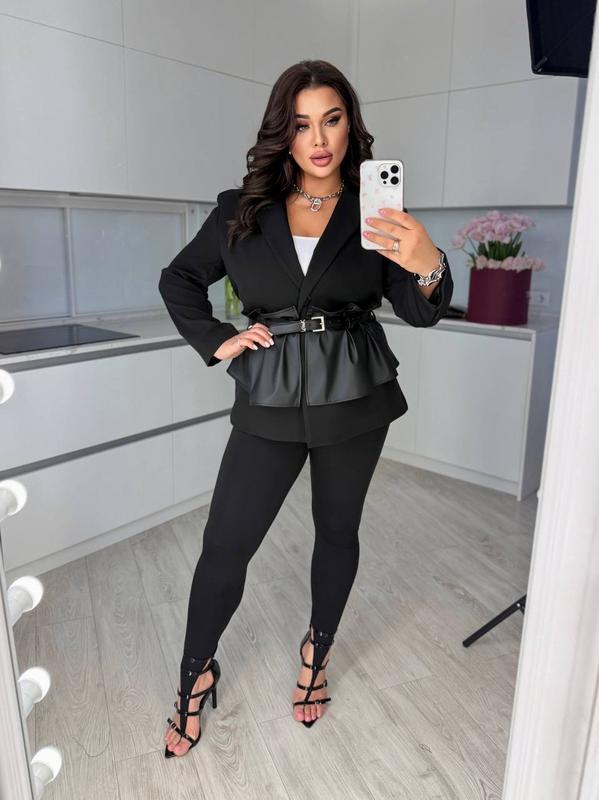 Пиджак на подкладке с поясом и баской ▪Модель : 5760 Цена 1650грн ▪Ткань: костюмка / эко кожа ▪Размер: 42-44,46-48,50-52 ▪️цвет: белый и черный