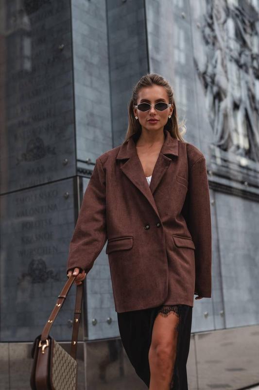 Жакет Овер тканина - замш-діагональ продублюваний, є підклад оверсайз формат, спущене плече, з кишенями, на двох ґудзиках розмір універсальний 42-46 кольори - шоколад, сірий, кремовий, винний