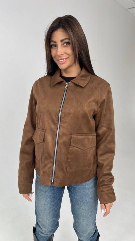 Куртка женская бомбер жакет пиджак укороченный экозамша на молнии
