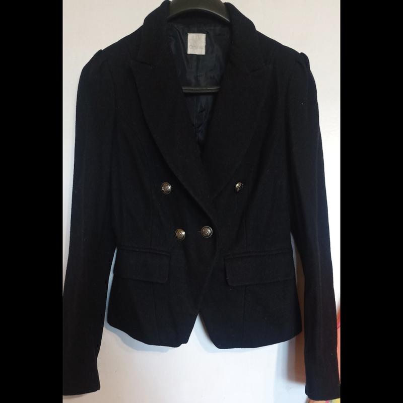 Пиджак б/у из плотной пальтовой шерстяной ткани французского бренда Camaieu. Очень красиво сидит по фигуре. Размер S. Длина 63см, длина рукава 62 см, полуобхват талии 42см, полуобхват груди 45см.