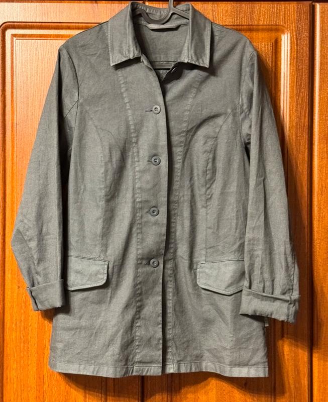 Жакет від дорогого німецького бренду Elemente Clemente Темно-сірий колір,цікавий крій В складі льон з котоном на 1 % еластану,тканина дуже якісна,злегка тягнеться Розмір 1 S,може бути від XS до невеликої М Плечі 41 Пог 45 Поб 49 Довжина 69 Рукав 63 Стан ідеал Розумний торг лише при повній оплаті,відправка щодня новою поштою
