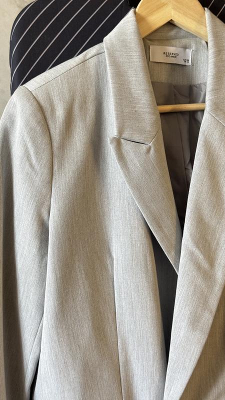 Жіночий світло-сірий піджак Reserved (розмір 38, колекція Eco Aware) Лаконічний та елегантний піджак від Reserved — ідеальна база для стильного гардеробу. Світло-сірий відтінок робить цю модель універсальною для офісу, зустрічей і повсякденних образів. Деталі: — Прямий класичний крій — Подвійна застібка на ґудзики — Класичні лацкани — Дві накладні кишені та одна нагрудна — М’яка підкладка Особливості: — Розмір: 38 (M) — Легкий і приємний на дотик матеріал — Лінійка Eco Aware — виготовлений з екологічно відповідальних матеріалів