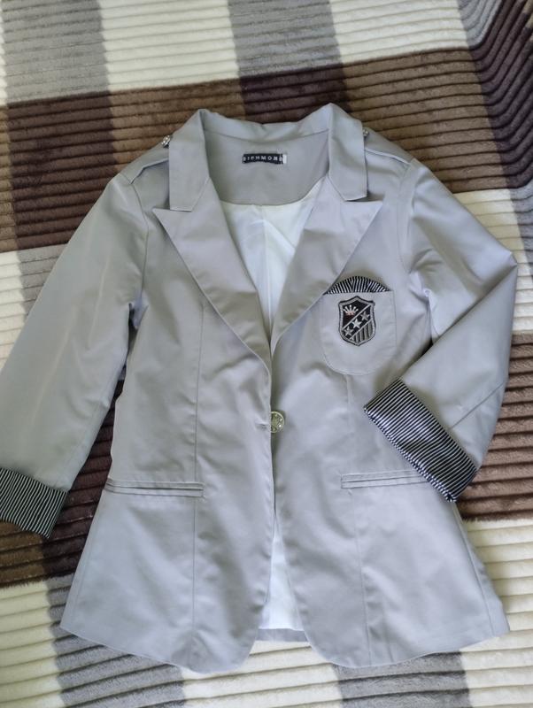 Серый женский жакет (пиджак) бренда Richmond на подкладке, на груди рабочий кармашек, боковые - "обманки". Без дефектов. Размер С Длина 60см Плечи 36см ПОГ 40см Рукав 40см, с подвернутым шелковым бортиком, можно не закатывать