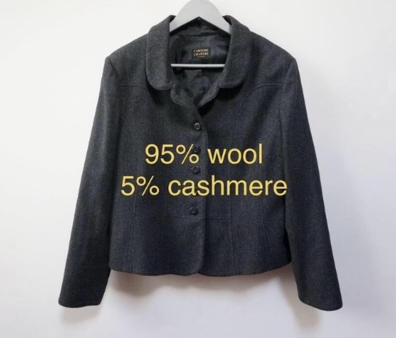 Жакет серый премиум бренда Caroline Charles Указан размер UK18 Плечи 44 По груди 57 Длина 58 Рукав 60 По низу 57 95% шерсть, 5% кашемир