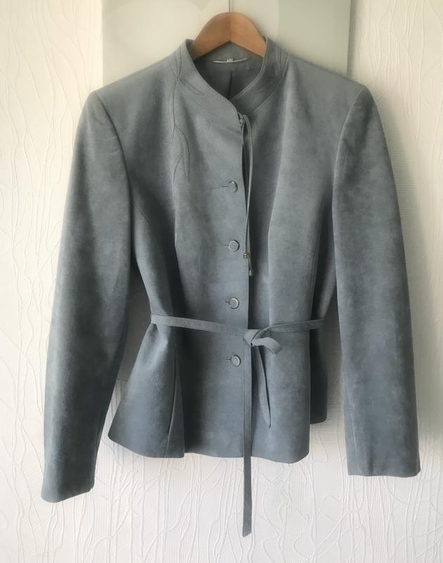 Вінтажний жакет зі штучної замші в новому стані Легка і якісна тканина, дуже схожа на натуральну Якість пошиву теж бездоганна Гарний блакитний колір з сірим відтінком Довжина 60 см Плечі 42 см НОГ 55 см Рукав 60 см