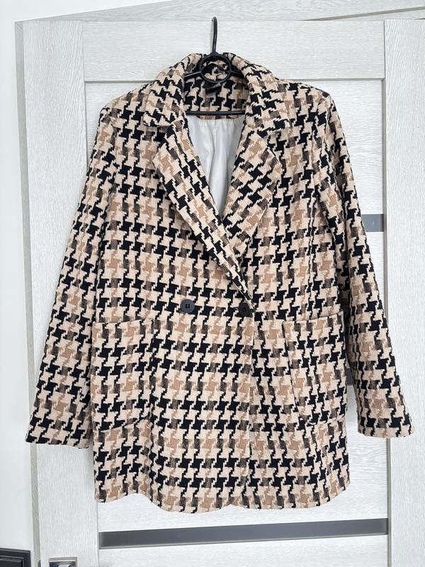 Пиджак, коричневый, принт гусиная лапка, Размер с-м, идет немного оверсайз, с кармашками