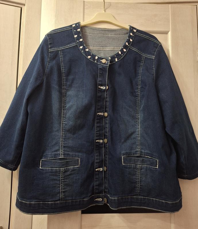 Длина - 67 см, пог - 68, поб - 70 см. Джинс со стрейчем, красиво тянется.