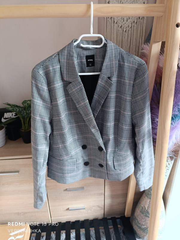 Двубортный блейзер/пиджак "в лапку" Sinsay. Раздел XL. Полиэстер Замеры: ПОГ 51см, до 55см; полуобхват по низу 53см, до 56см; плечи 42см; рукав 63см; длина от плеча 54-55см. без нюансов.