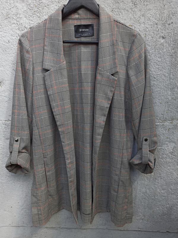 Легкий пиджак без подкладки. Длина рукава регулируется. По бокам разрезы. Есть карманы. Пиджак в отличном состоянии, без дефектов. Размер S. Замеры: плечи 39см Рукав 60см Длина 76см Под руками 52см Пот 50см