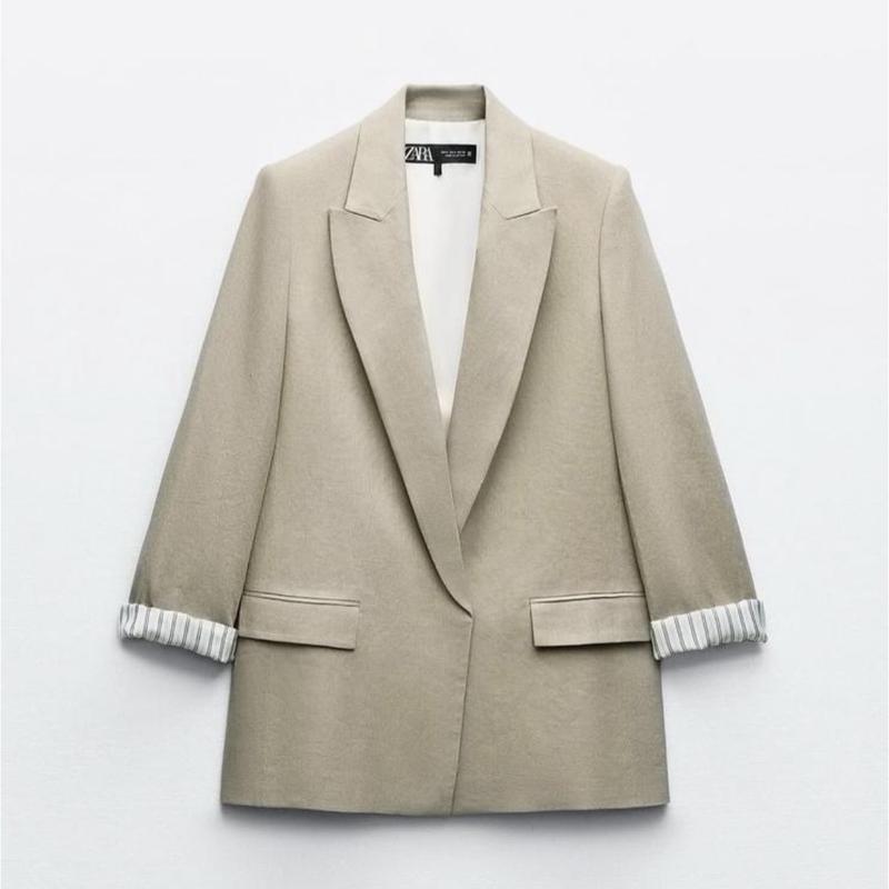 Лляна жіноча куртка від Zara без застібки. Бежевого кольору. Піджак Zara Розмір XS Груди 92см Рукав 62см Довжина 74см Плечі 38,5см