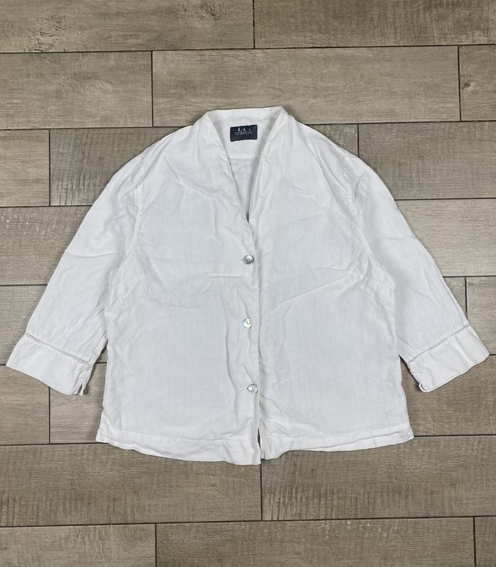 Oska size 3 linen jacket blazer natural collarless white button піджак жакет блейзер льон