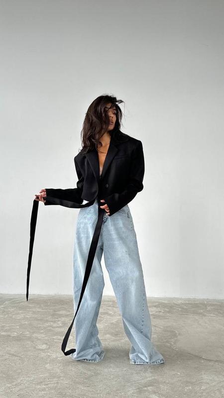 Жіночий піджак дакет вкорочений на запах якісний на завʼязках з плечиками