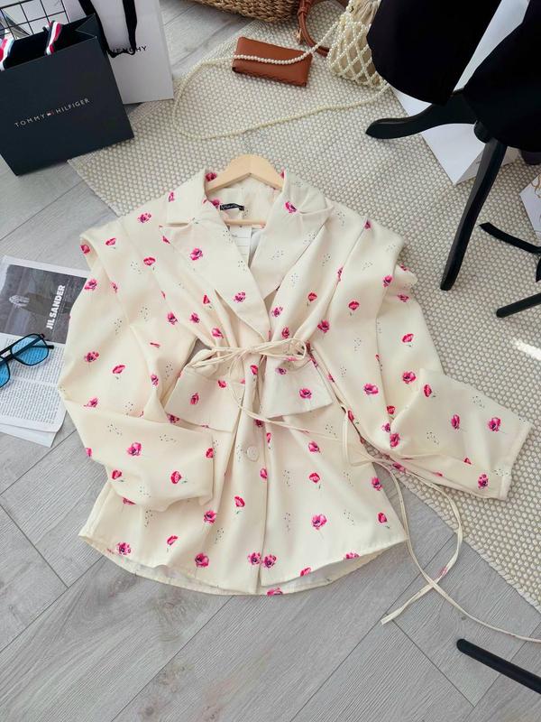 Красивий жакет -піджак у квітковий принт з поясом