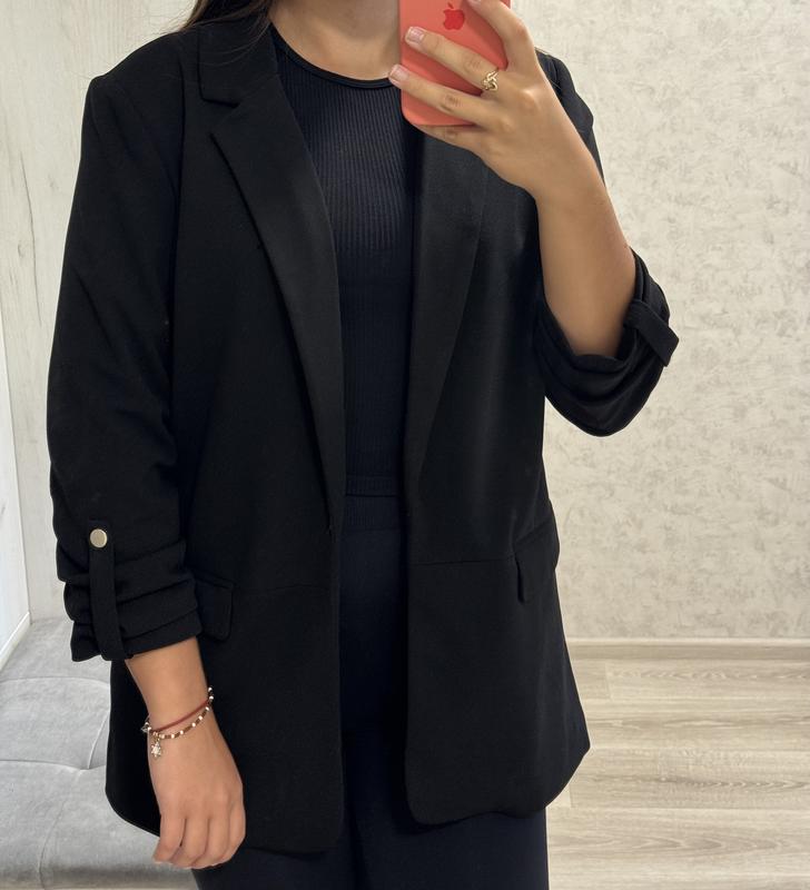 Рукав три чотири 47 Довжина 74 Ог до 55 По плечу 47 Тканина тягнеться По бірці розмір ХЛ 100% поліестер