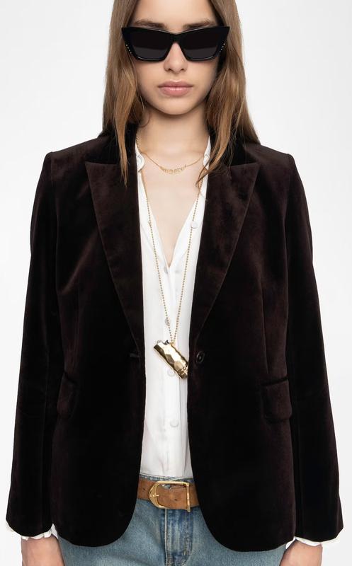 Блейзер из велюра - Классическая колонка - Бутонне Fermeture. - Poches passepoilées, poches à rabat. - Манши 7/8 с эполетами. - Купе с полным правом