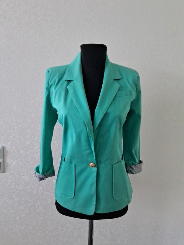 третья единица в подарок (при оплате на карту) Красивый жакет/ пиджак на дюймовочку размер: XXS ( 40-42) состояние новой вещи, с пломбой/ упакован Пог 42 см, длина 61 см, плечи 36 см рукав- 3/4 цвет: бирюзовый оплата на картку Приватбанку возврат нет