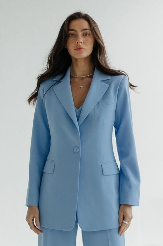 Жакет небесно блакитного кольору. Імітація під льон. Дуже класний фасон. Звільняю шафу у звʼязку з переїздом