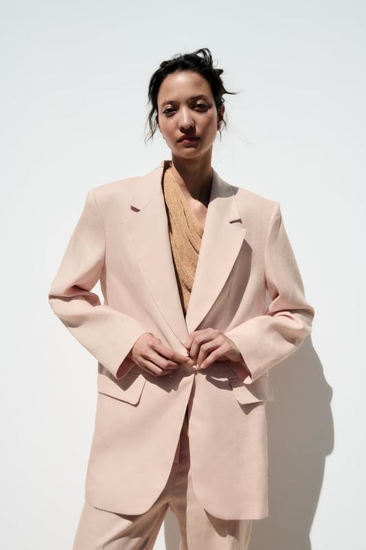 БЛЕЙЗЕР В ЧОЛВЕЧОМ СТИЛЕ ZARA ЗІ 100%-ГО ЛЬОНУ 🏷️Состояние новое с бумажными бирками 🇪🇺 🔖 🏷️Размер L 🏷️Цвет бежево-розовый 🏷️Состав: 100% сертифицированный европейский лён Блейзер с лацканами, подпятниками и длинными рукавами. Застегивается на пуговицу спереди. Карманы с клапаном спереди. 🏷️Замеры L: длина по спинке 79 см., плечи 48 см., рукав 62 см., ПОГ 56 см., ПОТ 55 см., ПОС 58 см.