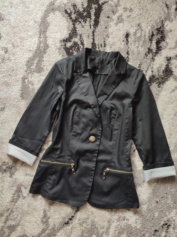 Черный пиджак, жакет с рукавом 3/4 без подкладки р.s