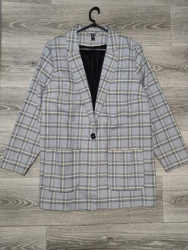 Пиджак в клетку прямого кроя плечи 42, рукав от плеча 57, пог57, длина 75, пот 60. состояние идеальное, на подкладке