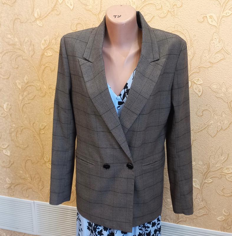Пиджак на подкладке. Длина 66 см, длина рукава 60 см, ОГ 96 см