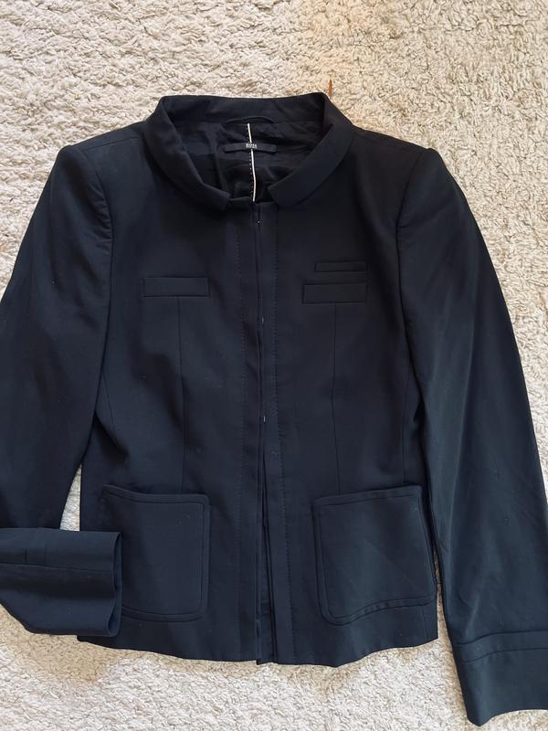 Строгий офисный деловой пиджак знаменитый немецкий бренд Hugo Boss, оригинал, насыщенный черный цвет, высококачественная шерсть-96./‘ и 4./‘ полиамид, отшит по безукоризненным лекалам, благодаря которым посадка по фигуре безупречна, стильный дизайн- в виде тренча - накладные карманы, застежка на крючках, скрытая под планкой, маленький отложной воротник в виде стойки, на рукавах имитация манжета, состояние новой вещи, размер указан I 42- см замеры на фото Незаменимая вещь в вашем гардеробе, стилизуется под любой образ- от офисного до торжественного ! На фото представлен черный блеизер (пиджак) от Hugo Boss Описание блейзера Hugo Boss: • Бренд: Hugo Boss - немецкая компания, известная производством модной одежды, включая классическую мужскую и женскую одежду премиум-класса в линии BOSS. ® • Дизайн: Блейзер выполнен в классическом стиле, что характерно для линии BOSS, сдержанного черного цвета. о • Детали: Присутствуют карманы, лацканы и центральная застежка (на крючках, скрытых под планкой), а также декоративные элементы, такие как прострочка [Изображение]. • Материалы и качество: Продукция Hugo Boss изготавливается из качественных тканей, что обеспечивает долговечность и комфорт, в данном случае это натуральная шерсть