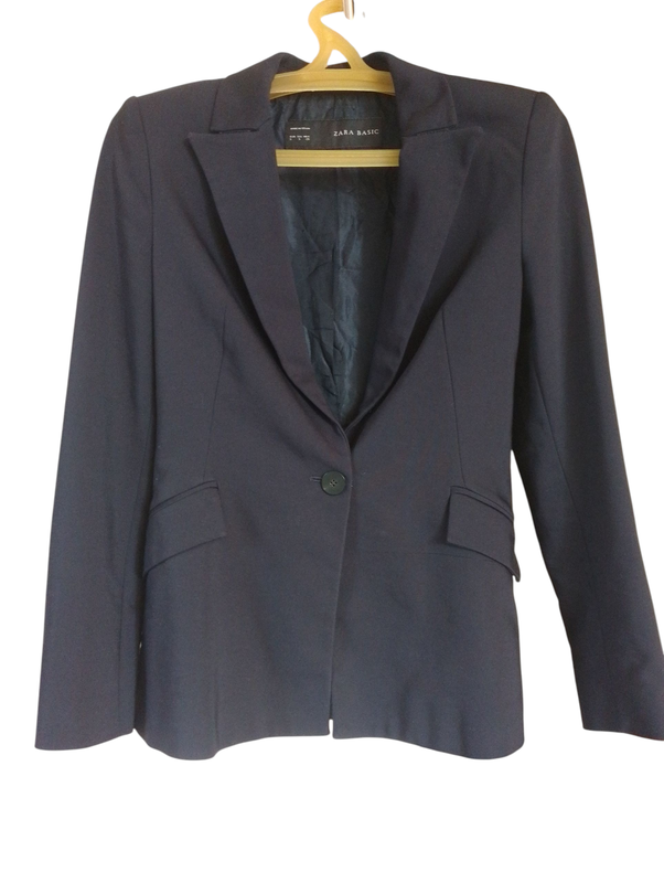 Пиджак жакет темного синего цвета Zara размер S. Длина 64, ширина под руками 40, рукав 59. Стан идеален.