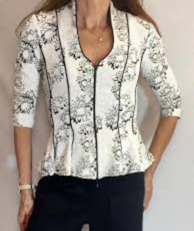 Размер 14, длина 57, полуобхват груди 48, полуобхват талии 42, полуобхват бедер 60, длина рукава 43. Тканина тягнеться.