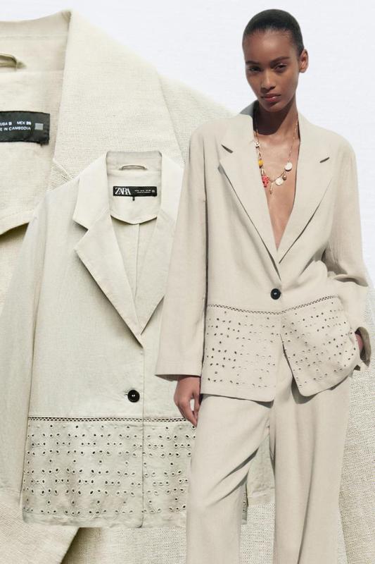 Zara new піджак блейзер жакет зі змішаного льону та віскози з ажурною вишивкою