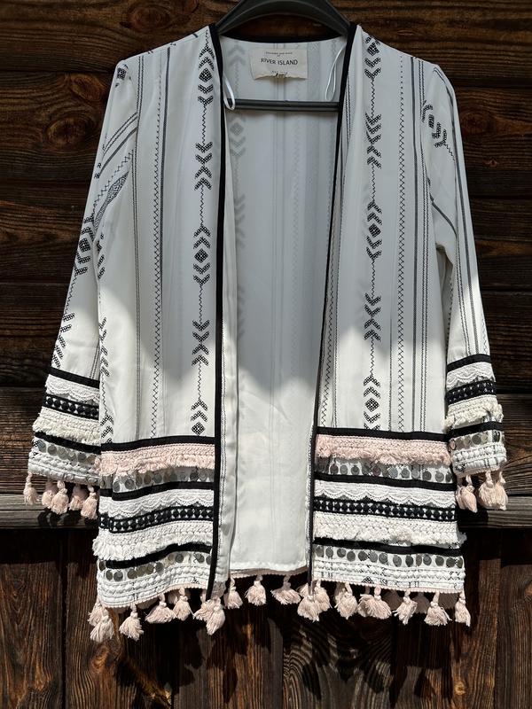 Дуже крутий жакет в стилі boho з етичним візерунком бренду River Island Розмір 8(S/XS)