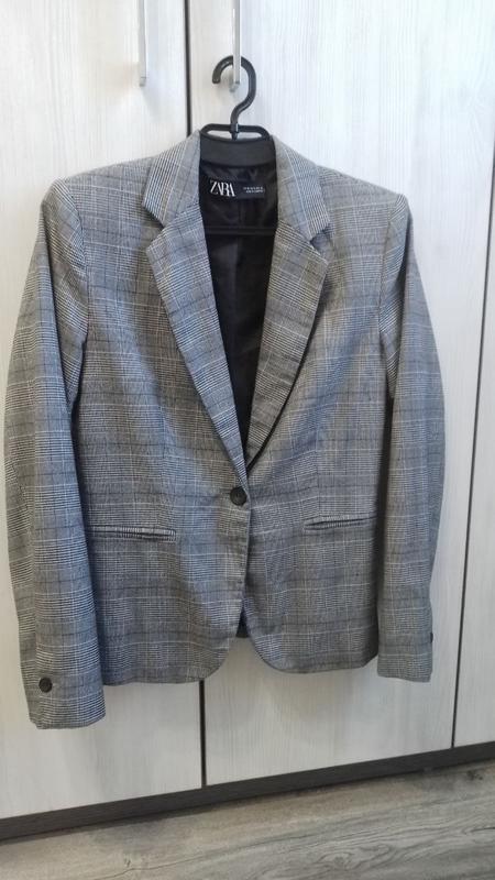 Пиджак женский ZARA цвет - серый, в клетку, размер : M,S ; eur-38, Ausa-6, mex-28. Стан- идеальный, есть карманы.
