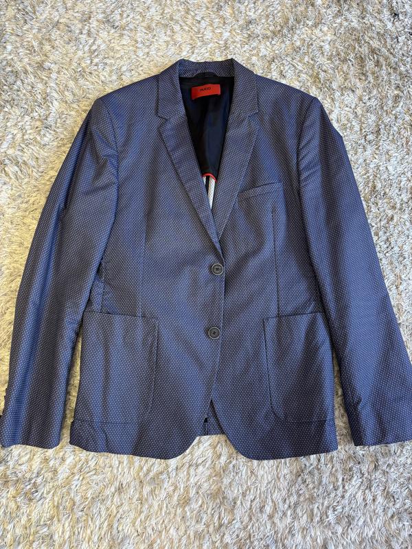 Синій в крапочку білу піджак від Hugo Boss. Стильний, дуже класний, підійде на розмір М (48). Оригінал