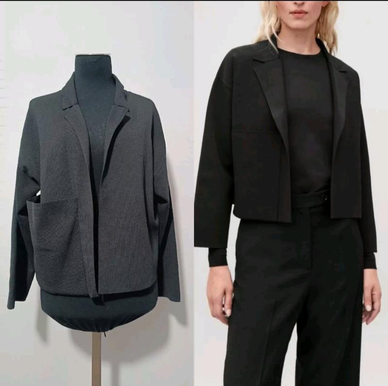 Эта куртка, тщательно сшитая из плотного джерси с добавлением эластичного материала, полностью выполнена миланским трикотажем, что обеспечивает высокое качество. Слегка свободный крой, открытый перед, широкие лацканы, большой функциональный карман и ровные края. Длина по спинке для размера S — 52 сm. Ширина под мышками — 50 см. Длина рукава — 47 см. Ширина плеч — 55 см. Рост модели — 178 см, размер S. Фото с сайта. Рост модели в реальности мой — 160 см, размер S. Состав: 56% вискоза, 42% полиамид, 2% эластан. Можно стирать в стиральной машине.