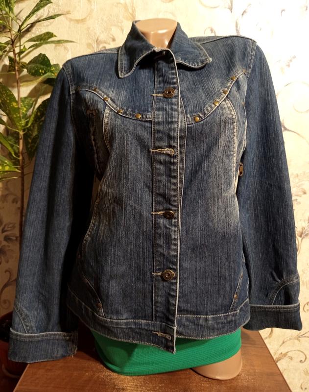 Куртка джинсовая, пиджак женский, есть не большой нюанс - не имеет 2 заклепок, показано на 2-3 фото.