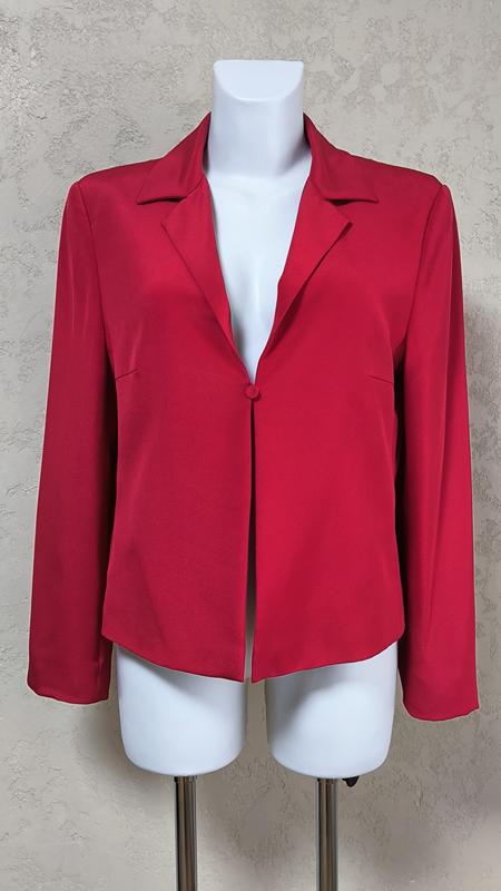 Шелковый жакет от премиального бренда Laurel (100% шелк). Пиджак застегивается на одну пуговицу, сочетается с любым низом: юбками, платьем, брюками, джинсами. Его строгий крой и универсальный цвет придают образу элегантности и профессиональности. Идеально подходит для деловых встреч, офиса или торжественных мероприятий. 💫 Размер: 38 💫Состав: 100% шелк, подкладка. 52% вискоза, 48% полиэстер 💫 Состояние: идеальный 💫 Замеры: