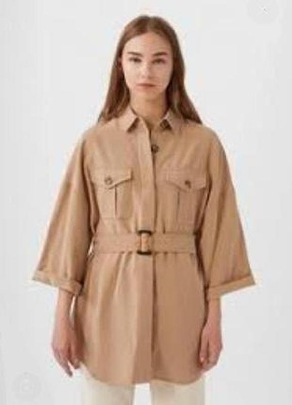Stradivarius сорочка вітровка,піджак Тканина плотна ,як на плащ,не літня ,скоріше як верхній одяг . Склад: 92% віскоза 8% поліестр написано р. XS буде оверсайз добре буде і на S-M