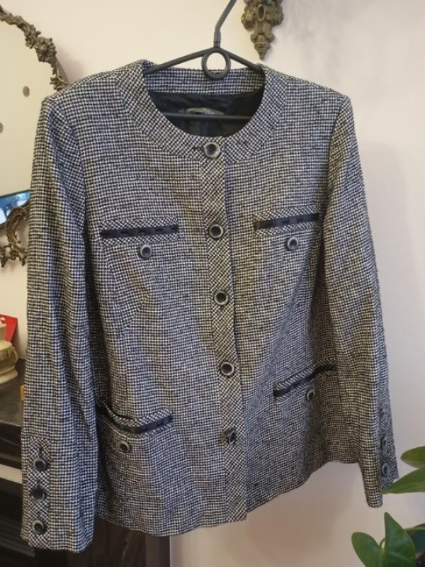 пиджак шерсть вискоза оригінал,в отличном состояние,один нюанс внутри карман підкладка прорізана, ,неокуратно расппроли один карман,второй зашит с производства..длина по спинке 83 см,длина рукава от плеча 85 см,плечо 12.5 см, ПОГруди 63-64,низ полуобхват 64 см