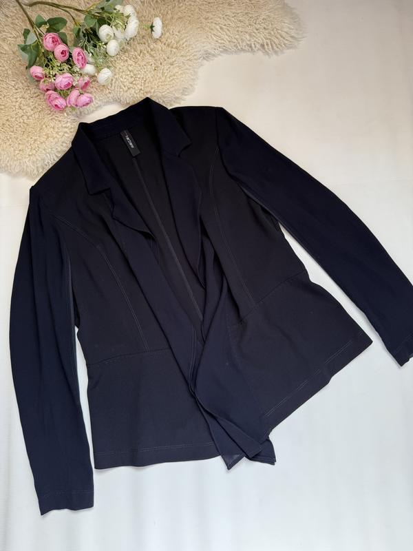 Стан відмінний Розмір візуально 42-44( по бірці розмір виробника N5) Плечі 41 см Рукав від плеча 60-61 см Ширина під пахвами 54 см ( ширина по спинці між бокових швів під рукавами) Довжина по спинці 61 см Колір комбінований - чорний з темно-синім( практично чорним), внутрішня частина рукава - трикотажні вставки темно-графітового кольору