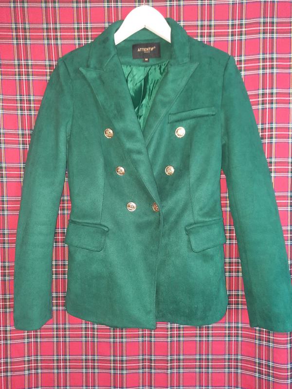 Суперкрутый изумрудный двубортный жакет под замшу