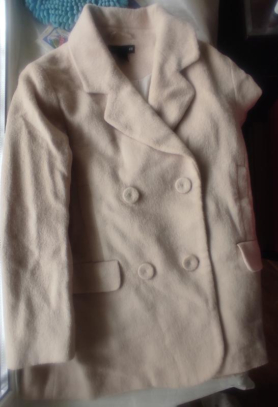 Трендовый двубортный теплый шерстяной пиджак пудрового цвета. р. 36-38