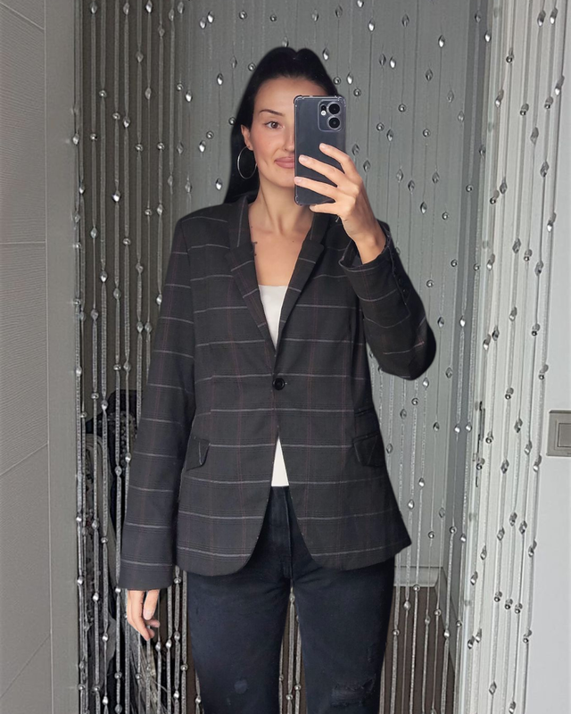 В наличии и в продаже. Бренд Amisu. Размер 40/L/наш 48 можно на M-L/46-48. Не тянется, полиэстер и эластан. Полиэстер. Спереди три горизонтальных кармана-муляж. Сзади снизу разрез. На локтях модные заплатки. Незначительный нюанс на фото 6, в носке не заметно. 174 / 87 / 67 / 97 Обмену-обоврат-передажа нет. ____________________ STYLE_SALE Стиль, найденный с любовью! Подписывайтесь! 💛💙