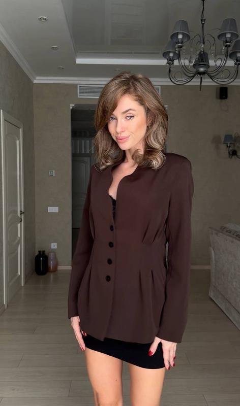 1076 Новинка 💔 Вже в наявності ‼️ ✔️ Жакет ✔️Розмір:42-44,46-48 ✔️Тканина: костюмка+підкладка ✔️Колір: чорний, шоколад Трендовий жакет який має бути у кожної дівчини . Жакет йде на підкладці та має плечики✨