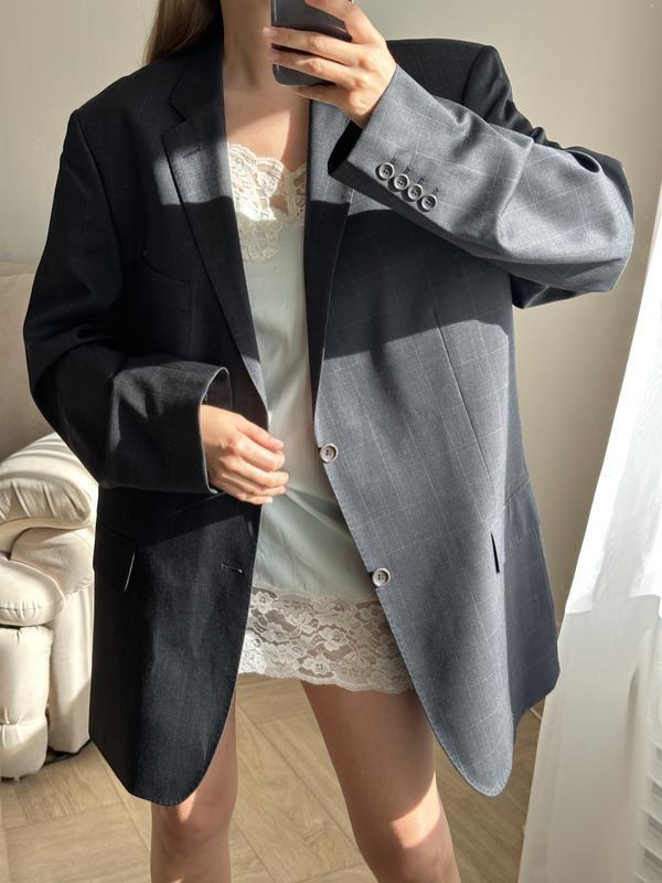 Сірий піджак у клітинку з чоловічого плеча оверсайз