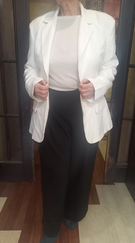 Новый белый однобортный пиджак, блейзер, жакет, на подкладке,с поясом, известного английского бренда Boohoo. Размер указан 16., но смотрите по параметрам, так как немного маломерит. Длина блейзера 75 см. длина плеча 15 см, длина рукава от плеча 63 см. ПОГ 56см, ПОТ 47 см, ПОБ 52 см.