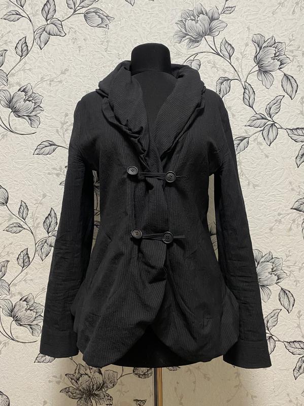 Жакет в ідеальному стані, з 100% тонкої шерсті. Ґудзики брендовані, є запасні. Довжина спереду 67 см Довжина по середині спинки 61 см Довжина рукава 61 см Ширина плечей 42 см ПОГ під пахвами 49 см ПОТ 45 см . Є кишені. Повернення немає. Доставка за рахунок покупця