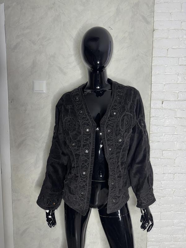 Велюровий піджак жакет з декором . Довжина 62,5, ПОг 53, ПОБ 54, рукав 60/72, плечі 45